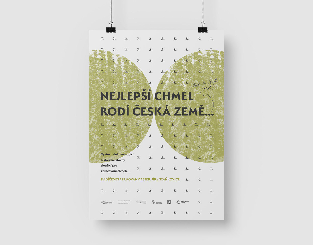 Návrh layoutu a sazba 14 panelů výstavy dokumentující historické stavby sloužící pro zpracování chmele, návrh plakátu k výstavě. Vzniklo ve spolupráci s FF UJEP.