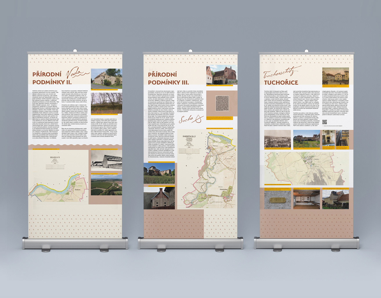 Návrh layoutu a sazba 20 panelů výstavy dokumentující historické stavby sloužící pro zpracování chmele, návrh plakátu k výstavě. Vzniklo ve spolupráci s FF UJEP.